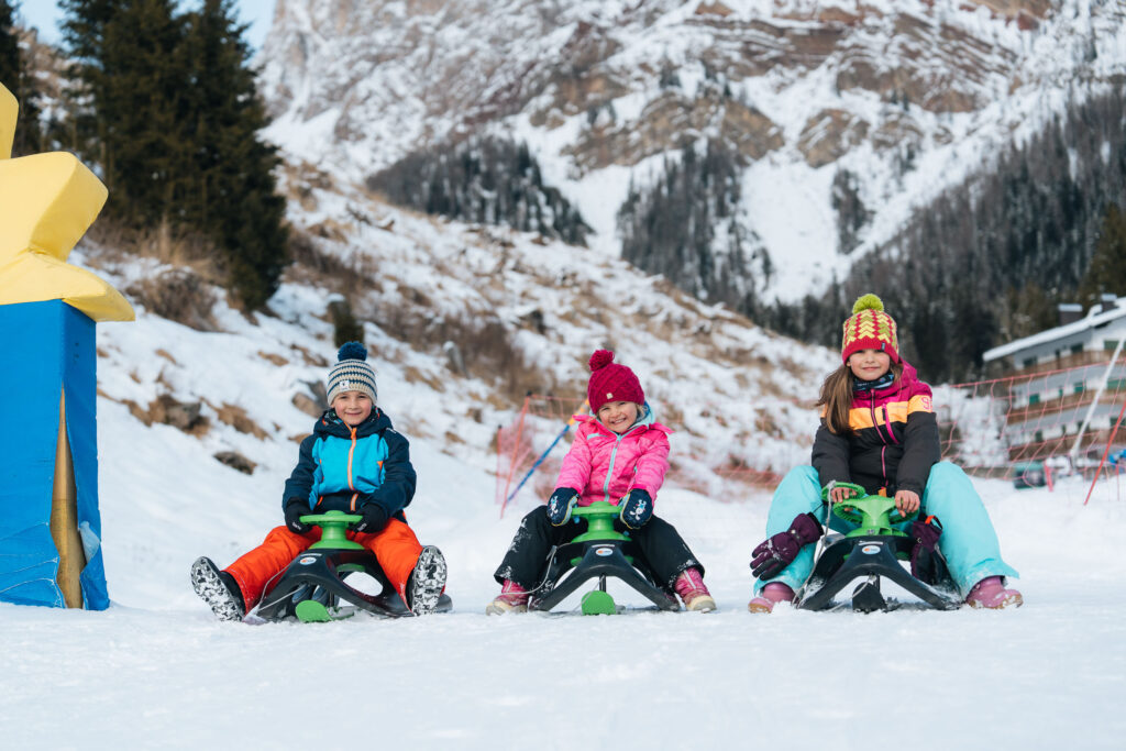 Scopri il Nasse Park con la neve: un campo scuola dove imparare a sciare e una pista dedicata per gommoni, bob e slittini, dove divertirsi in compagnia di tutta la famiglia a pochi passi dal centro di San Martino di Castrozza!